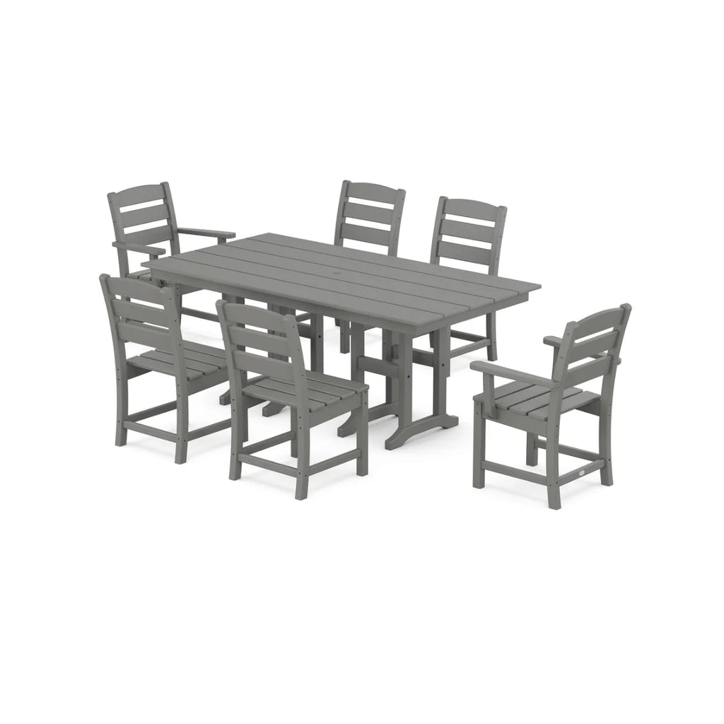 The Polywood Lakeside 7-Piece Farmhouse Dining Set is a stylish and durable outdoor furniture set designed for comfort and longevity. Featuring a weather-resistant design and made from sustainable materials, this dining set is perfect for patios, decks, and backyard spaces.